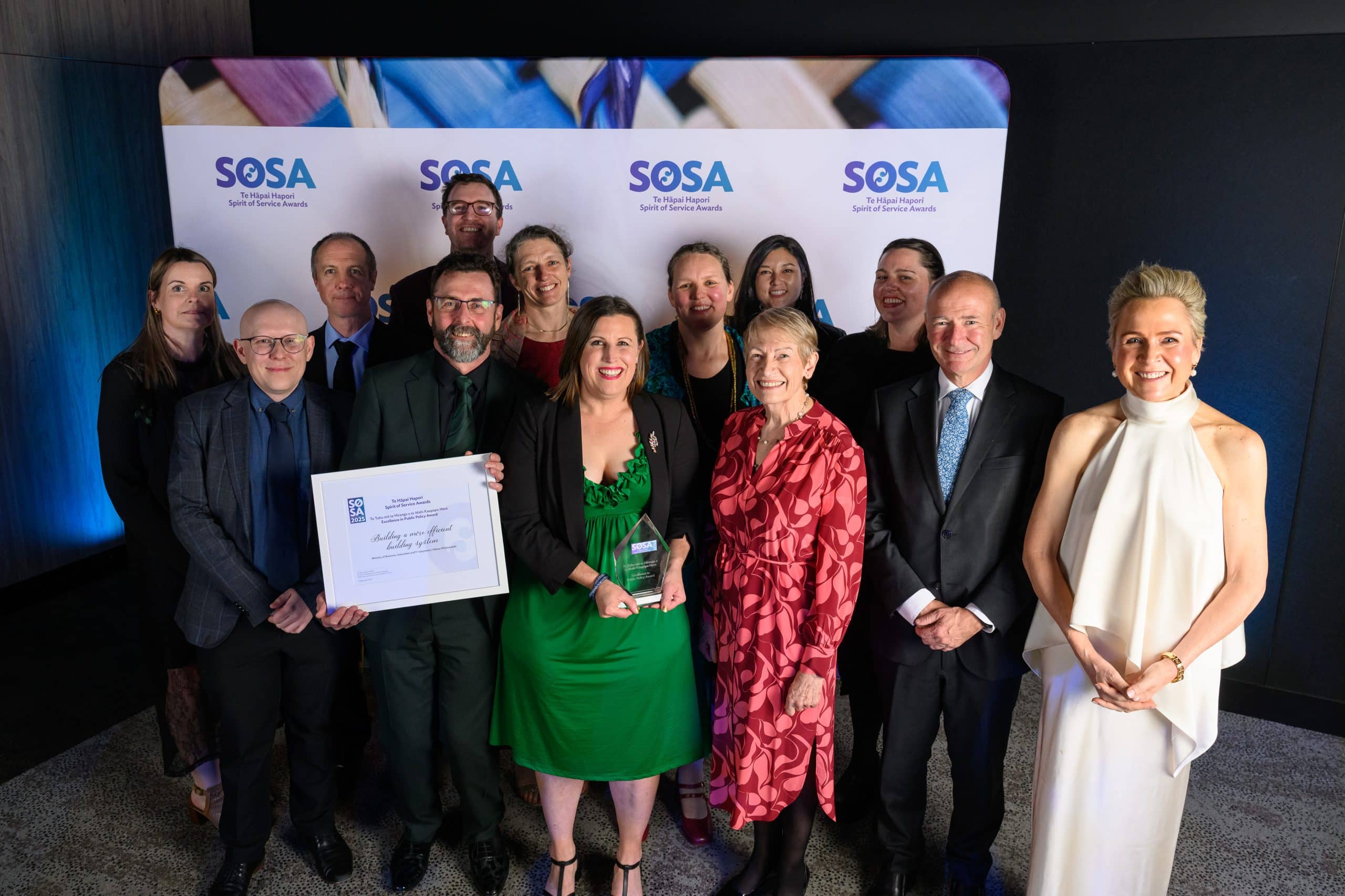 The Award was won by the Ministry of Business, Innovation and Employment, for their pioneering work in "building a more efficient building system” through changing legislation and policy to allow the use of more overseas building products and streamlining consent requirements.