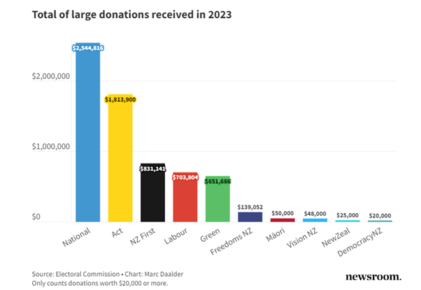 Party donations – National Party President Sylvia Wood was asked if having full coffers in election donations had made a difference or was ‘fair’. Newsroom’s Marc Daalder gave regular updates of the numbers. If nothing else, more dosh means more for advertising, better parties, and slicker campaign events.