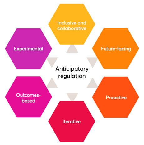 The six principles, outlined in the image below, are core components of the NESTA Anticipatory regulation model https://apo.org.au/node/324861.