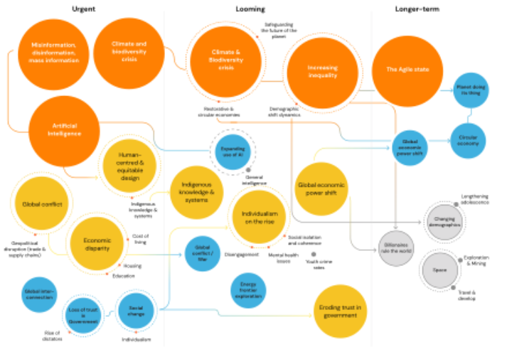 • Helping to build foresight literacy across the public service through learning and development sessions, workshops etc (ANZSOG’s masterclasses, curated conversations)