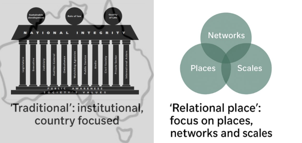 This approach contrasts with established practice focused on the strength of national institutions—parliaments, courts, watchdog agencies, and civil society—often treating them as isolated pillars operating within fixed national boundaries. While such traditional approaches have value, they do not account for how corruption and integrity operate across jurisdictions and sectors, and how networks of relationships among institutions and actors shape outcomes. As A/Prof Walton explained, ‘we often think about integrity as being grounded in institutions—what if we thought more about it as grounded in places and relationships?’.